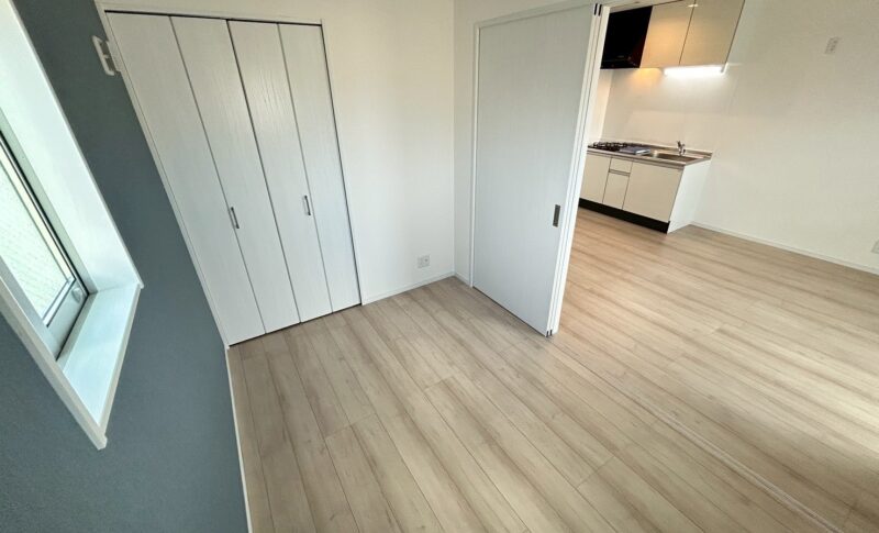 全室角部屋設計、リビング8帖+洋室5帖両部屋共窓があり明るいお部屋です。